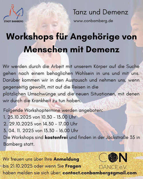 Wir infomieren Sie über einen Workshop von CONdance e.V. in Bamberg, ein